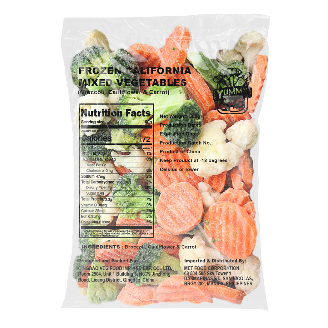 Home Yummy Frozen Fruits & Vegetables VEGETABLES YUMMY Frozen California Mixed Vegetables (Broccoli, Cauliflower & Carrot) 500g